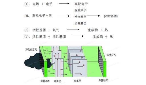 采用脈沖高壓高頻等離子體電源和齒板放電裝置,使其產生高強度、高濃度、高電能的活性自由基,在毫秒級的時間內,瞬間對有害廢氣分子進行氧化還原反應,將廢氣中的大部分污染物降解成二氧化碳和水及易處理的物質。